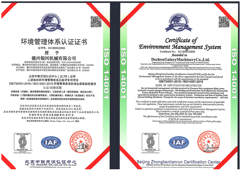 環(huán)境管理體系認證證書